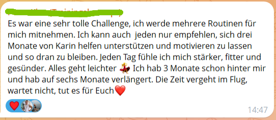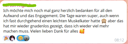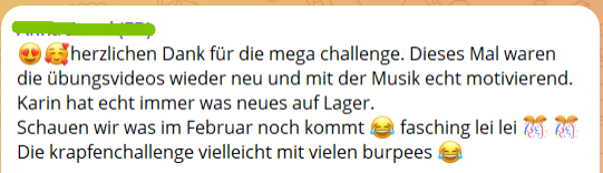 Du wünschst dir Struktur, Motivation und Austausch? In meinen Challenges und Gruppenkursen begleite ich dich über mehrere Tage oder Wochen – mit Bewegung, Ernährung & Mindset. Gemeinsam ist es leichter, dranzubleiben und Veränderung in den Alltag zu integrieren.